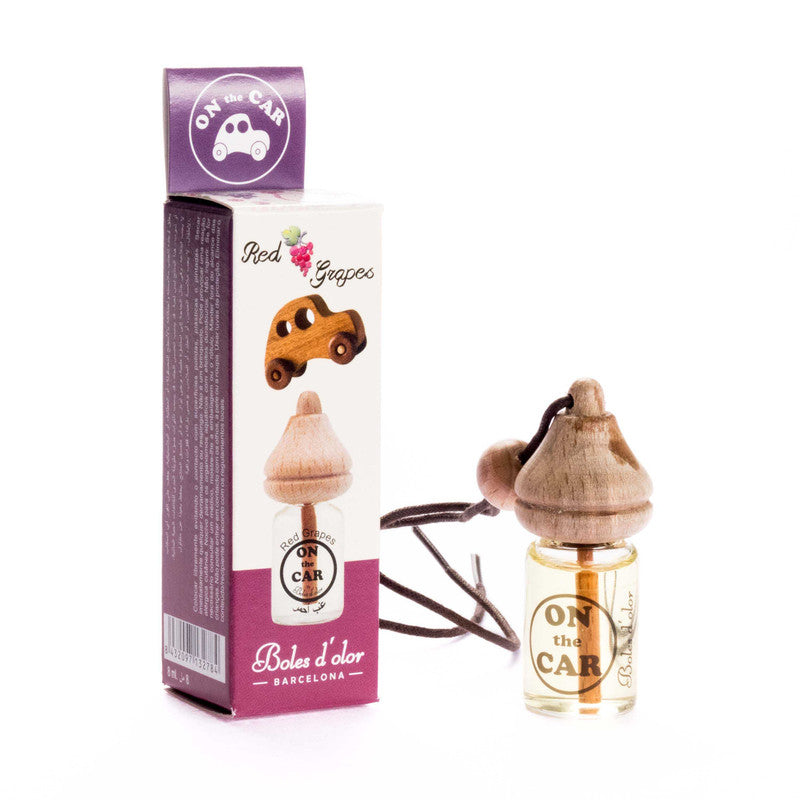 Ambientador para el auto con aroma Frutal y a la vez levemente Floral de racimos de Uvas Rojas dulces y maduras, con toques de Naranja, Violetas, Ciruelas y Frambuesas.