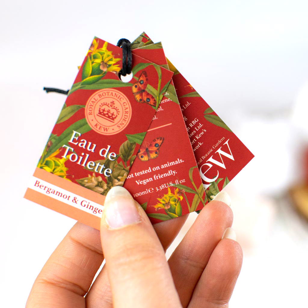 Disfruta de un cuidado personal de lujo con esta Eau de Toilette Bergamot & Ginger de Kew Gardens. Delicadamente perfumada y elaborada con ingredientes de alta calidad, esta fragancia vegana ofrece un estallido de aroma que te hará sentir ligera y radiante durante todo el día.