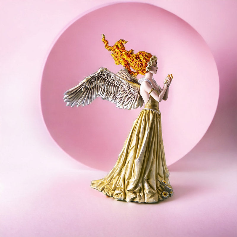 Preciosa hada que representa el espíritu de las llamas. Su energía vibrante y sus delicadas alas simbolizan la pasión, la transformación y la fuerza interior. Esta figura evoca la magia del fuego como fuente de inspiración, creatividad y renovación, capturando la esencia de lo elemental y lo fantástico.