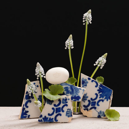 Todo el lujoso aroma en un tamaño compacto. Envuelto a mano en una funda con exquisitas ilustraciones inspiradas en los azulejos portugueses, este jabón 100% vegetal posee una fragancia delicada y floral, fruto de una armoniosa fusión de Pimienta Rosa y Jazmín