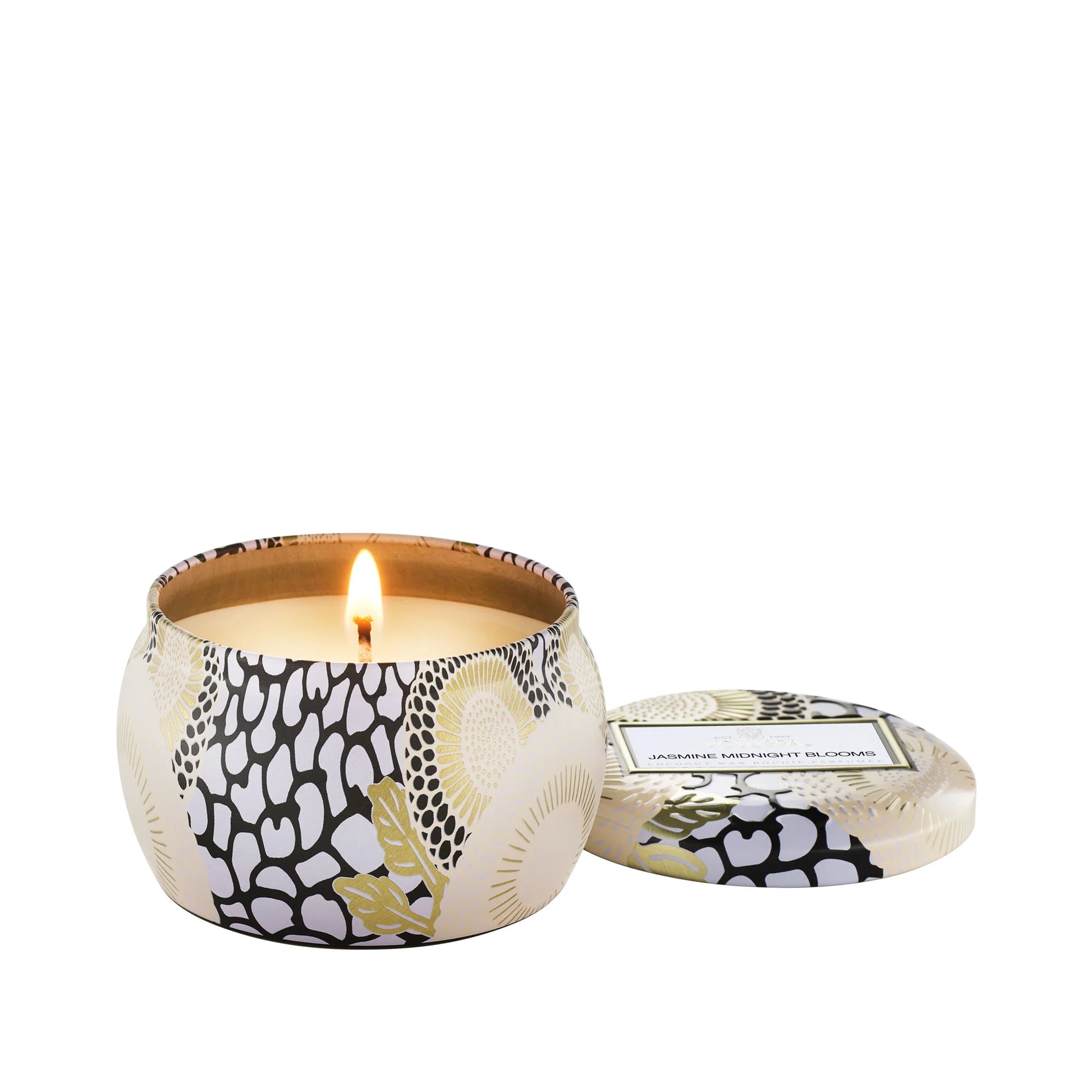 La exclusiva mezcla de cera de coco de Voluspa se presenta en un envase metálico de 118 ml, decorado con el clásico diseño Japonica, y cuenta con una tapa a juego que mantiene la vela libre de polvo cuando no está en uso.